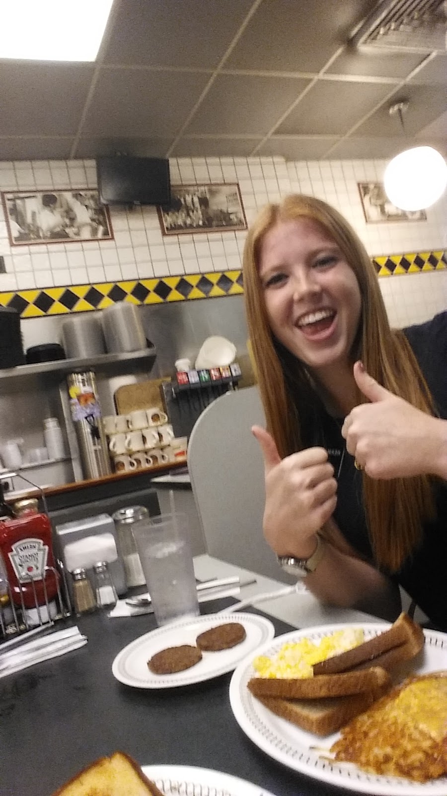Sis. Wade getting her dream fulfilled: dinner at Waffle House! What an experience!
